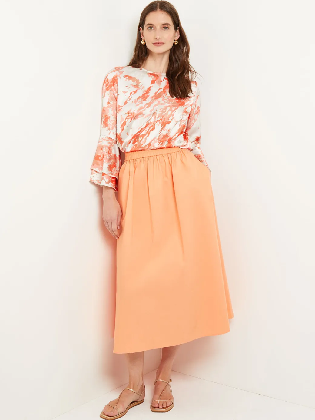 Flounce Sleeve Blouse – Jewel Neck Print Crepe de Chine|Misook Outlet