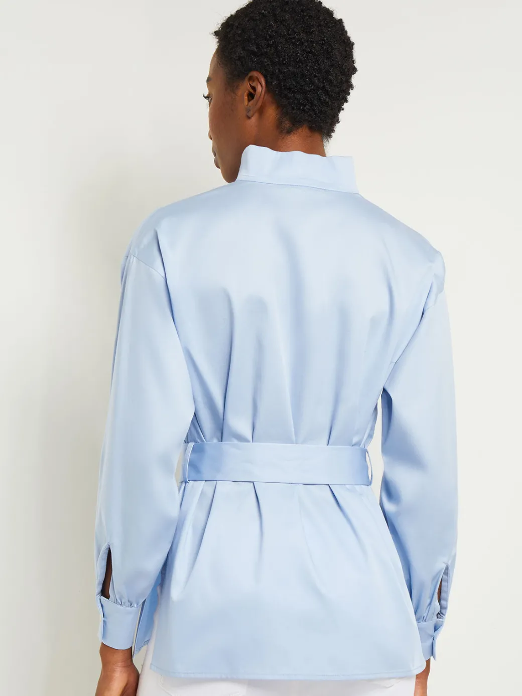 Crisp and sophisticated, this poplin blouse features an artful construction that denotes a perennial polish. This flattering top includes a removable belt that cinches slightly for an elegant, eye-catching finish.