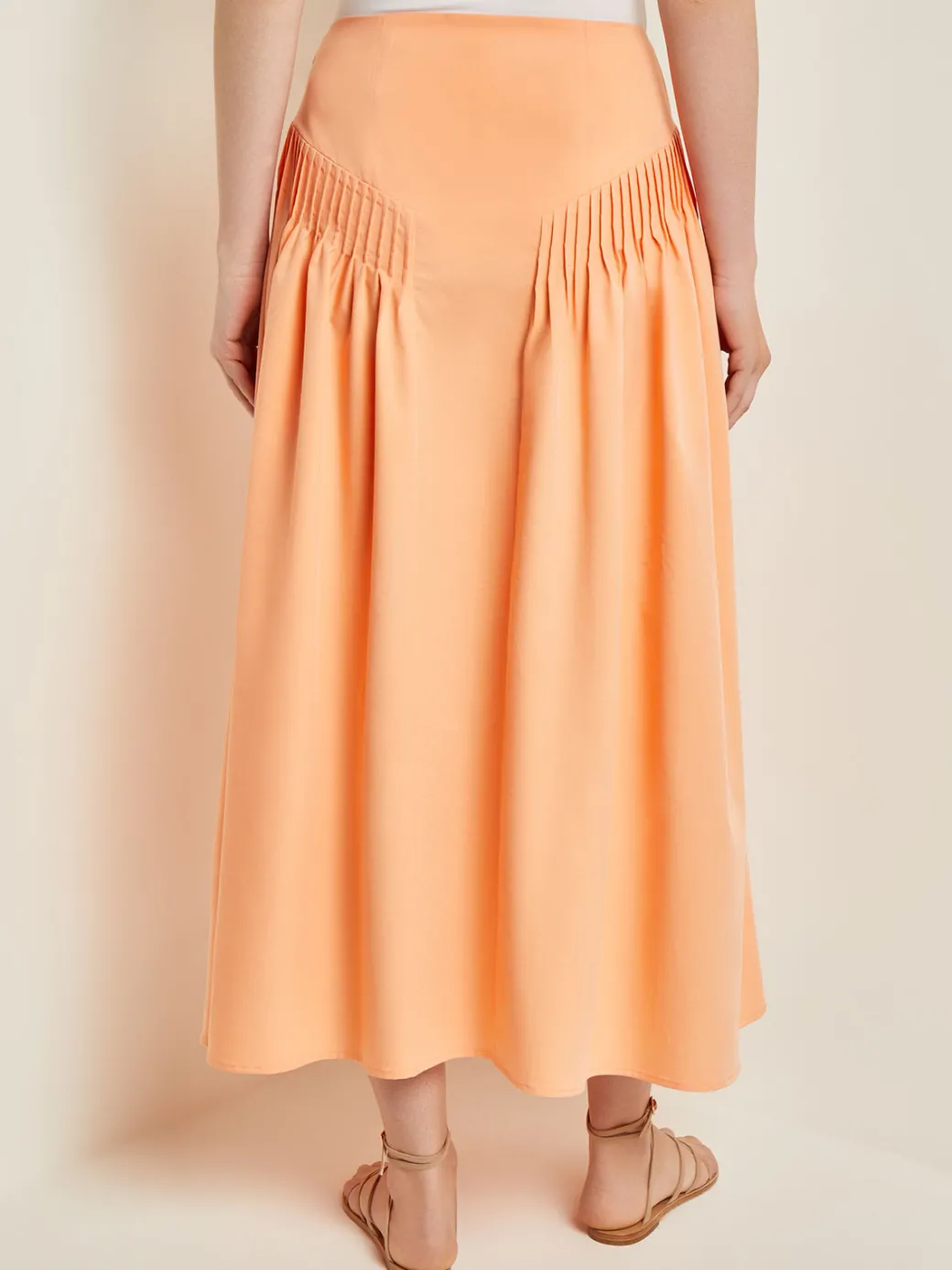 Godet Midi Skirt – Pleated Faux Cupro Silk|Misook Sale