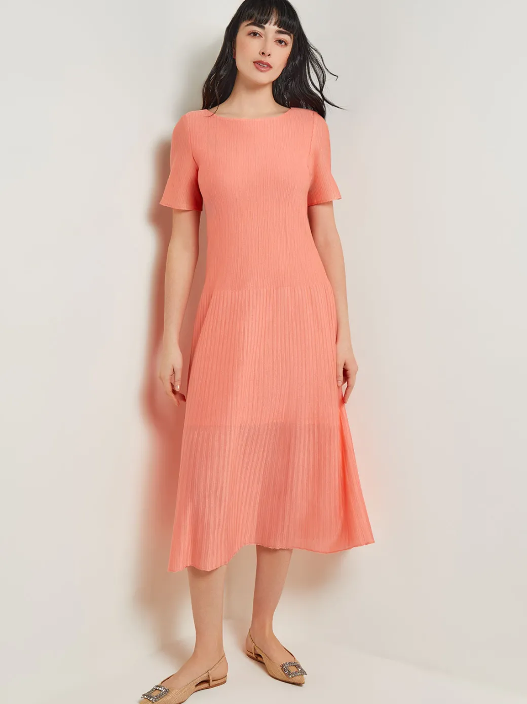 Midi A-Line Dress – Short Sleeve Burnout Knit|Misook Clearance