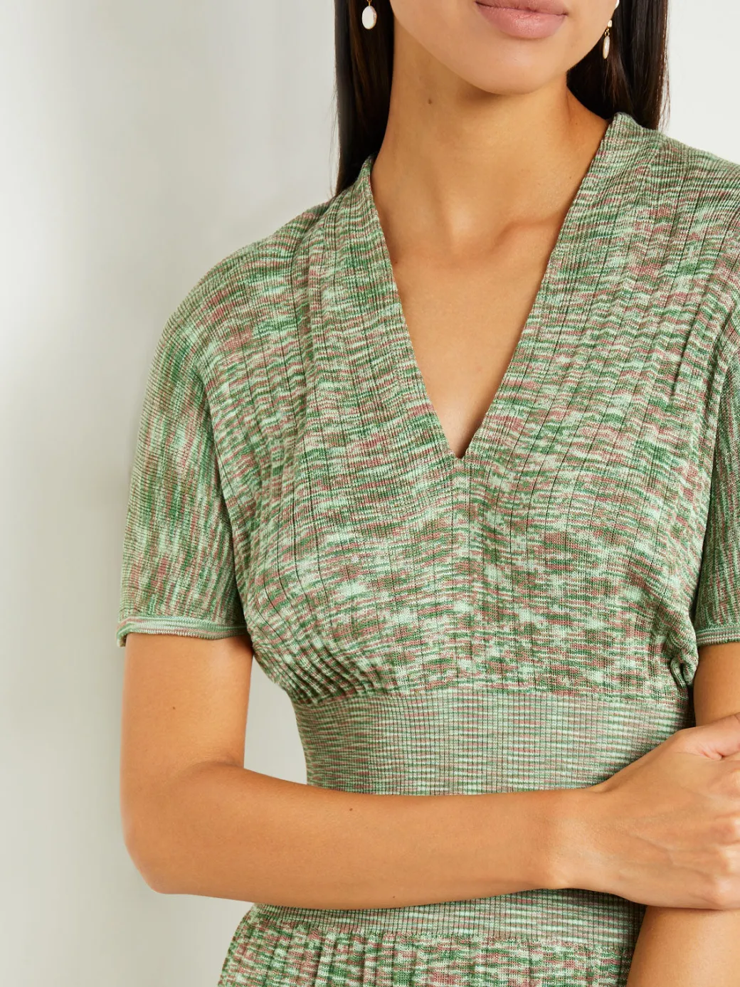 Mini Fit & Flare Dress – V-Neck Pleated Knit|Misook Hot