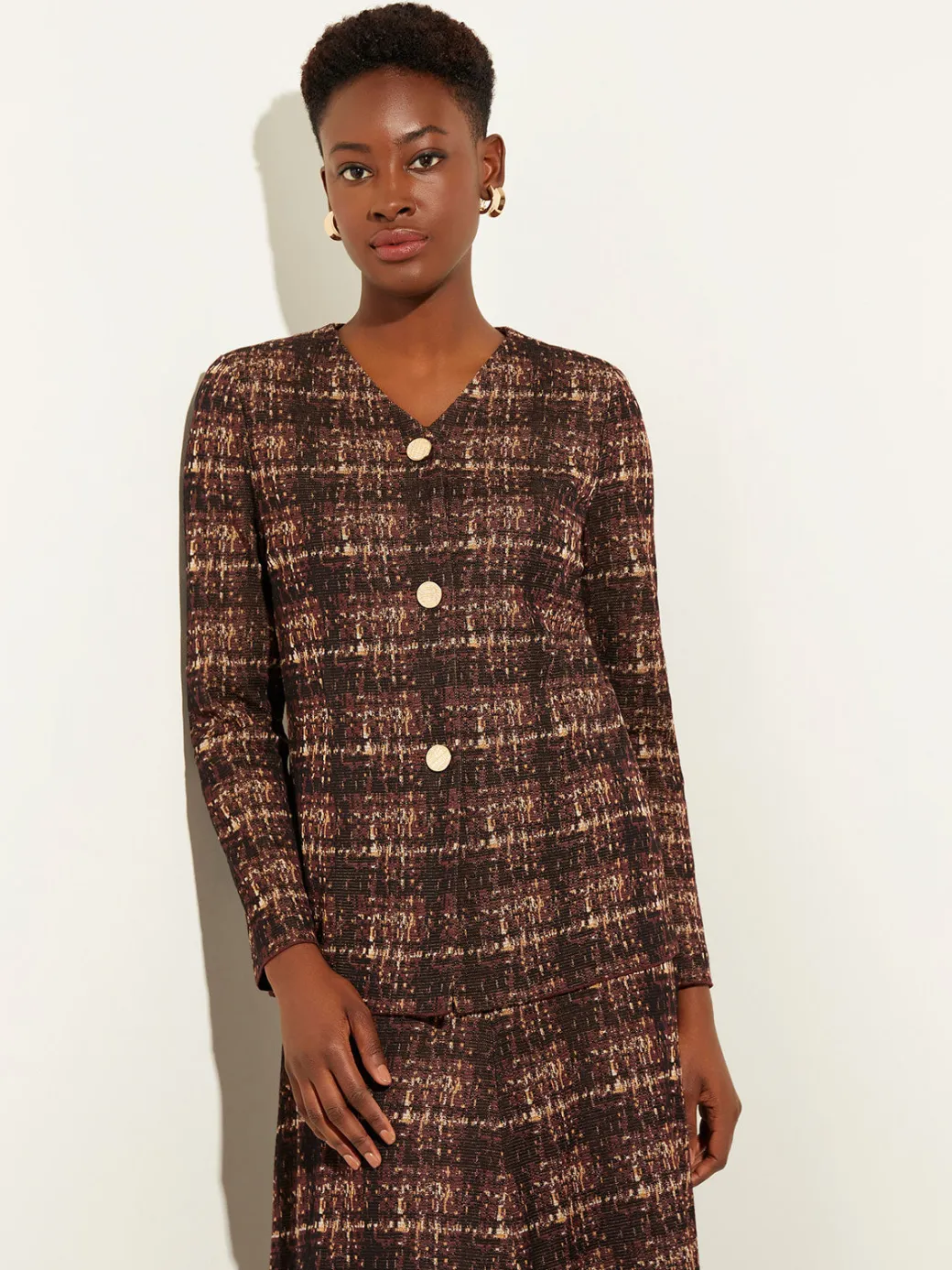 Plaid Button-Front Knit Jacket|Misook Fashion