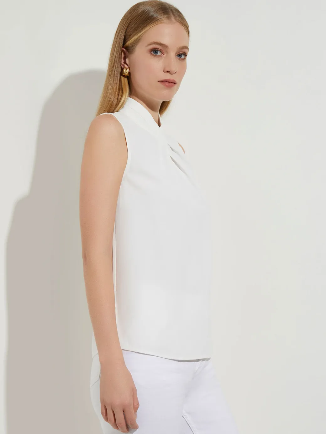 The classic white blouse gets an elegant upgrade with this top’s stunning pleated neckline with a unique, crossover-like look. A sleeveless silhouette is designed for effortless layering across seasons and occasions — a worthy addition to any lasting wardrobe.