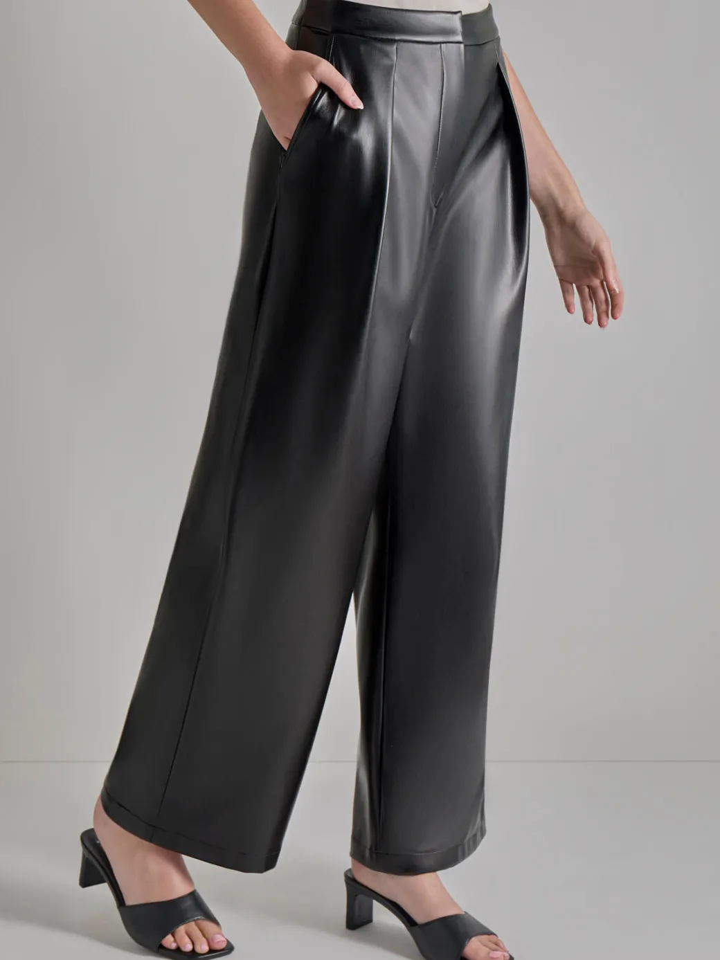 Pleated Straight Leg Vegan Leather Pants|Misook Sale