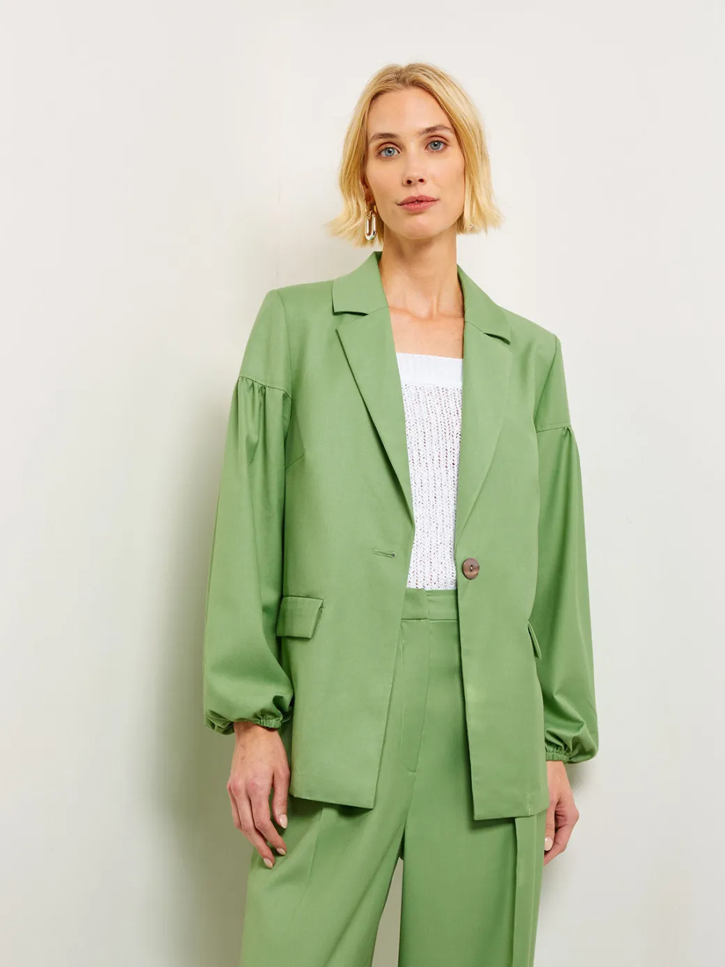 Relaxed Fit One Button Jacket – Balloon Sleeve Relaxed Woven|Misook Clearance