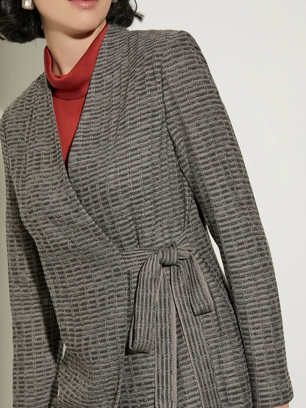 Tailored Fit Tweed Side Tie Knit Blazer|Misook Clearance