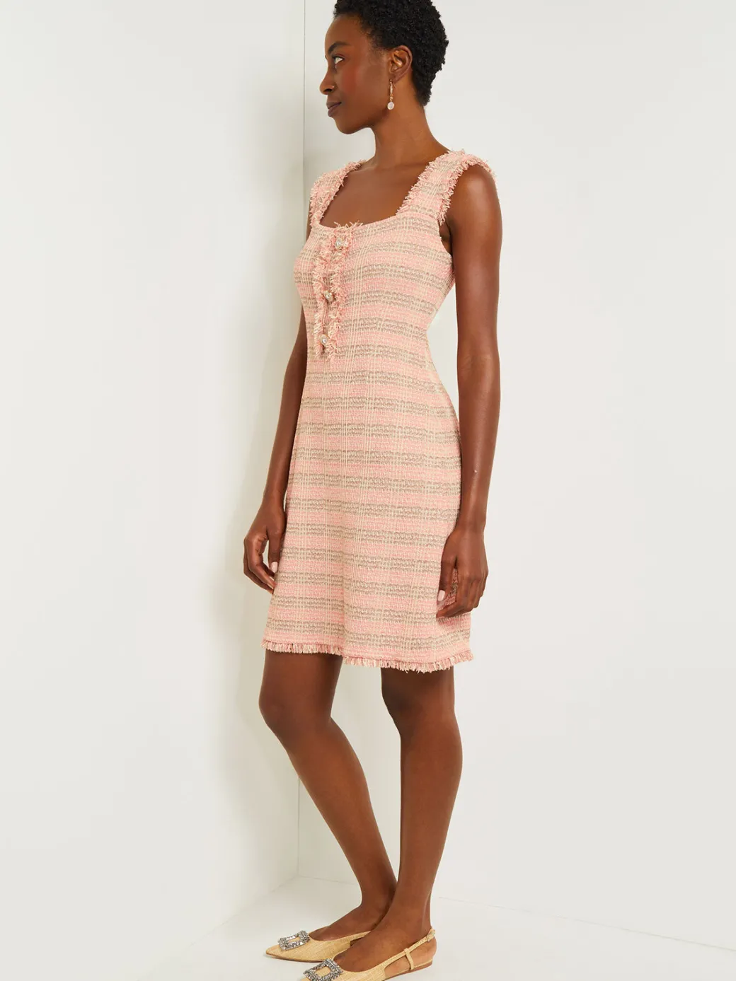 Mini A-Line Dress – Fringe Trim Tweed Knit|Misook Best