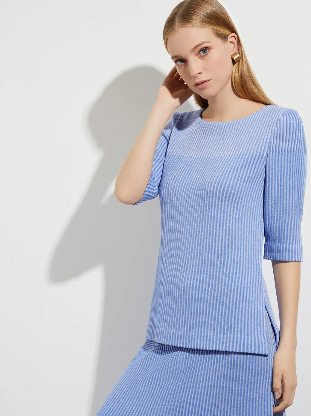 Simple yet striking, this knit tunic artfully blends stripes for a stunning ombre effect. Whether worn on its own or paired with our matching skirt, it’s an effortless piece that won’t go unnoticed.