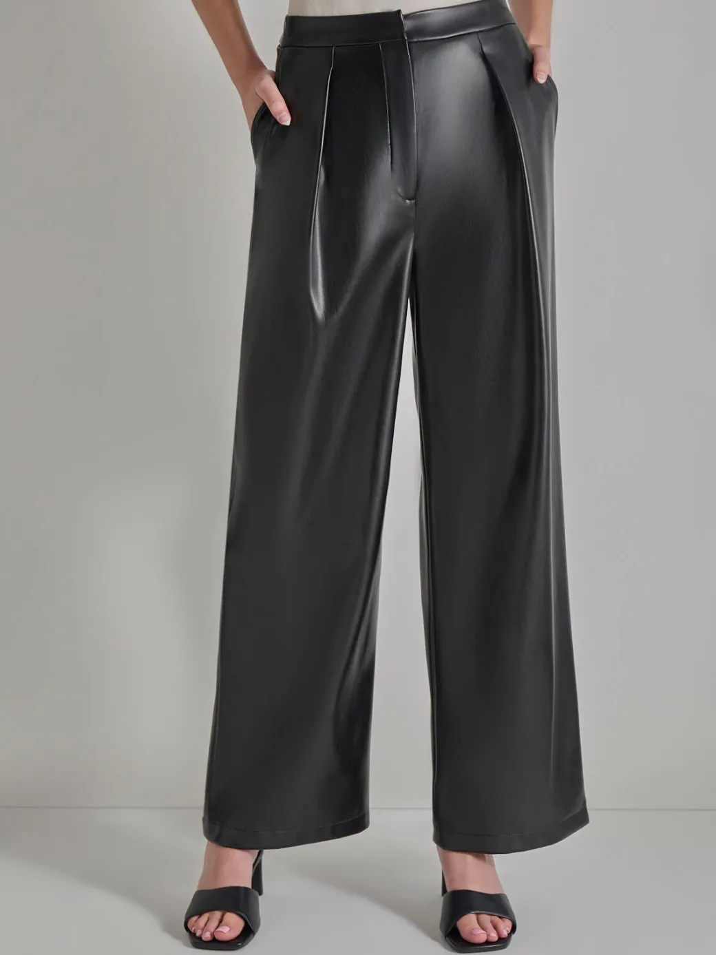 Pleated Straight Leg Vegan Leather Pants|Misook Sale