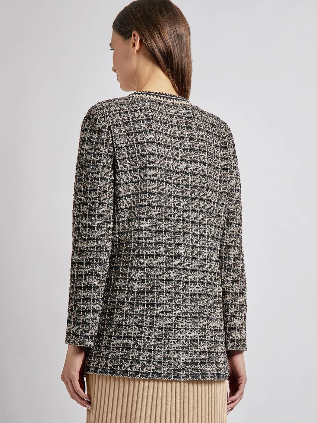 Tailored Fit Contrast Trim Tweed Knit Jacket|Misook Online